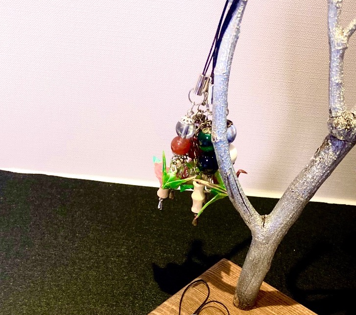 天然石と折り鶴が可愛いストラップ。