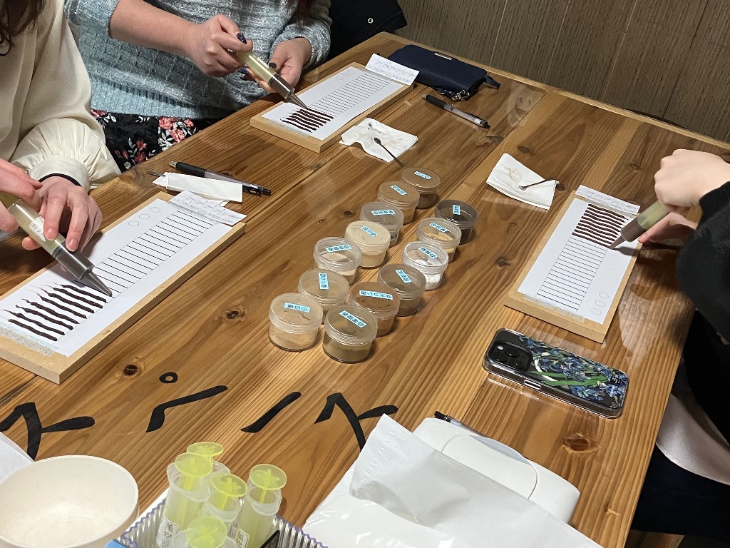 本日の腕輪念珠作り体験とお線香作り体験の様子です♪