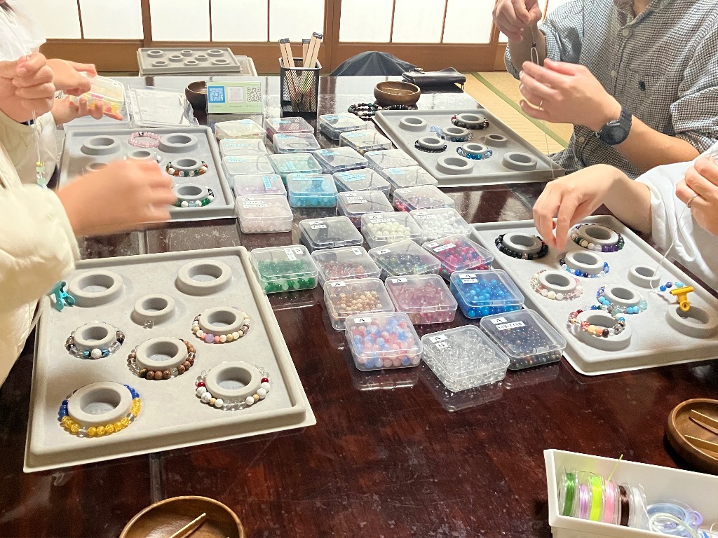 本日の腕輪念珠作りとお線香作り体験の様子です♪
