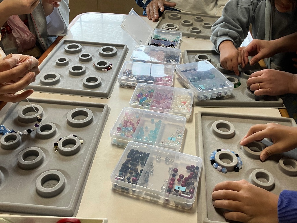 本日の腕輪念珠作りとお線香作り体験の様子です♪