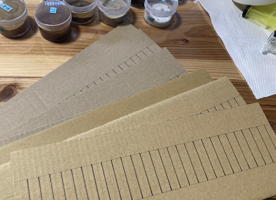 お線香作り用の段ボールは何回も作ると段ボールが反ったり汚れてくるので、定期的に作り直します。