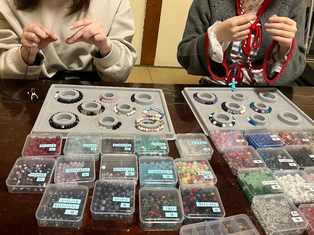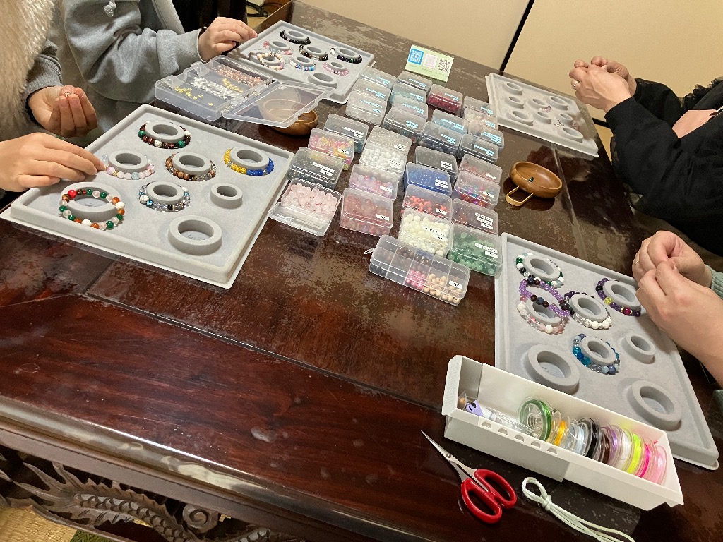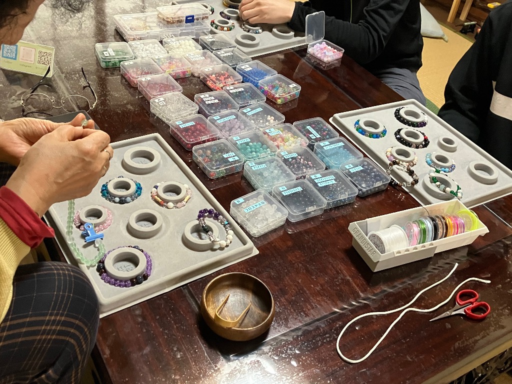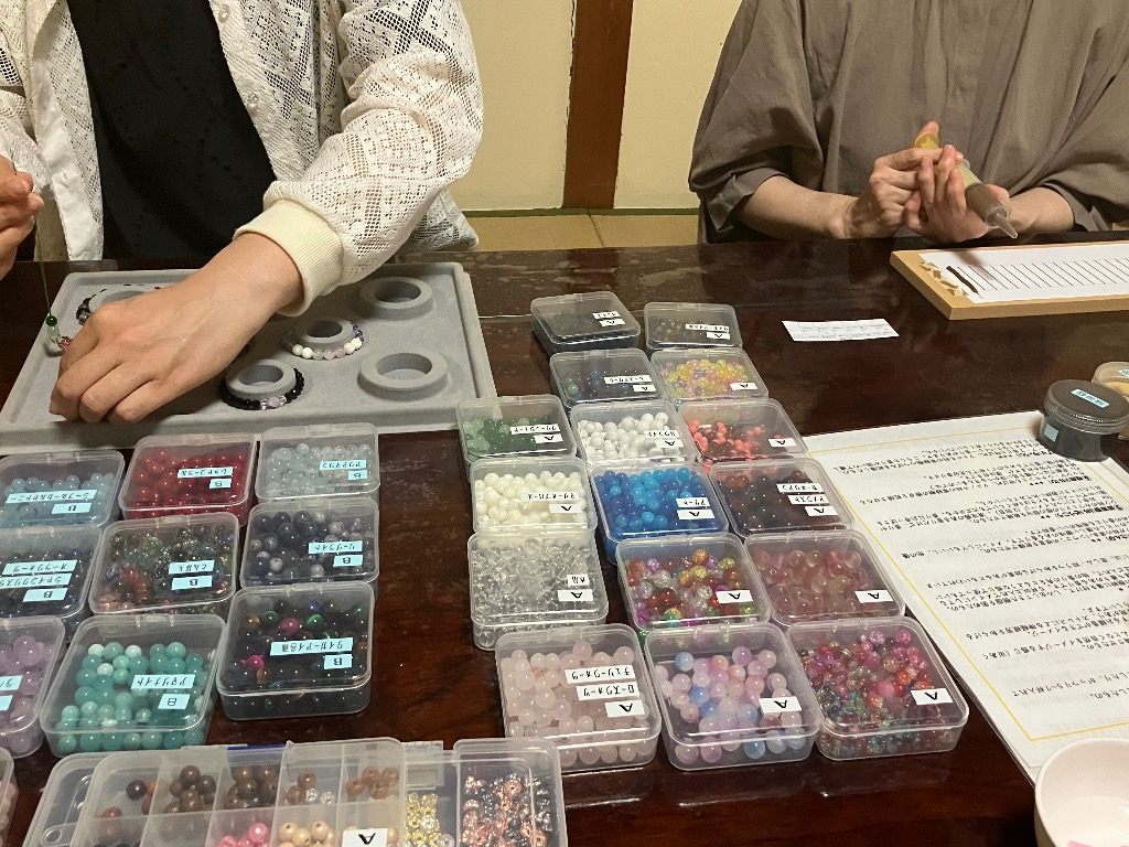本日の腕輪念珠作りとお線香作り体験の様子です♪